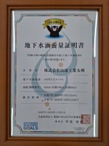肥後の水とみどりの愛護基金殿より『地下水涵養量証明書』を頂きました。